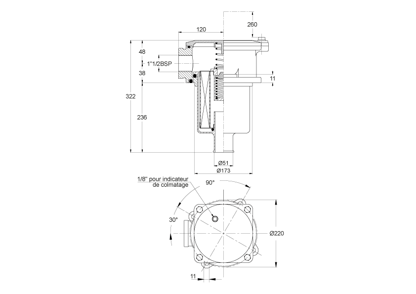 Couvercle équipé d'un bouchon 1/8" pour indicateur de colmatage