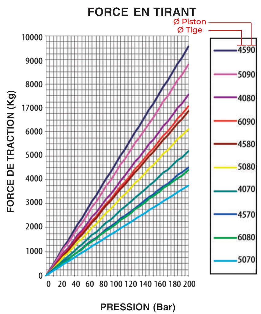 Afin de déterminer correctement vos vérins, vous devez connaître la pression disponible sur votre circuit hydraulique, la charge à déplacer ainsi que la course à effectuer.