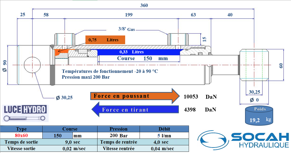 | Désignation | Vérin double effet standard Ø80x60 Course 150 |