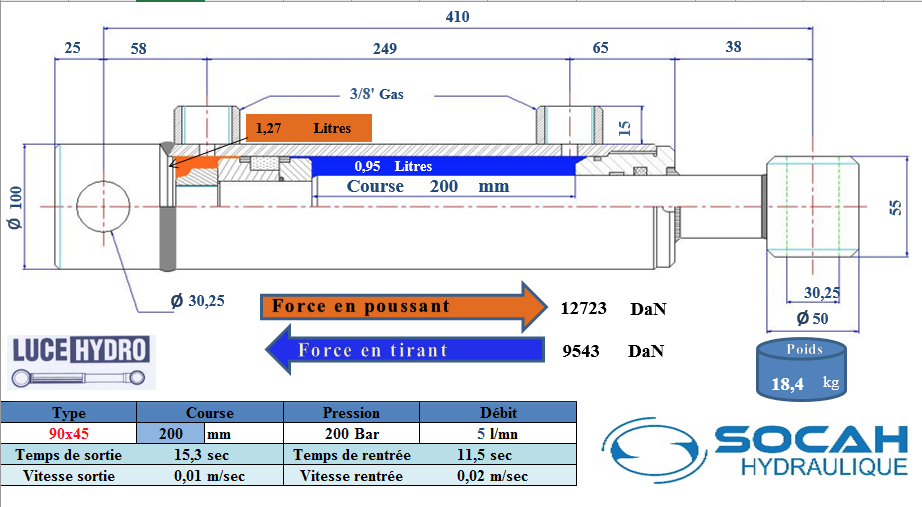 | Désignation | Vérin double effet standard Ø90x45 Course 200 |