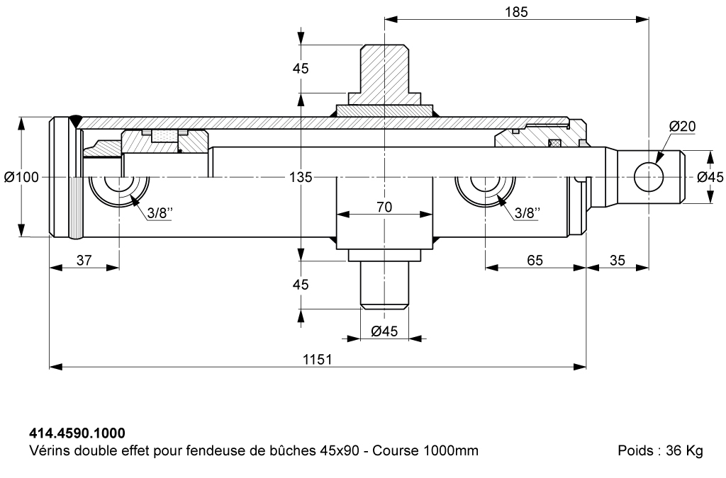 | Désignation | Vérins double effet pour fendeur de bûches 45x90 - Course 1000 |