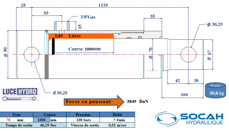 | Désignation | Vérin Simple effet standard Ø70 Course 1000 |